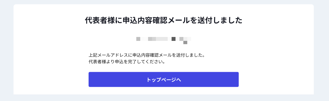 - 続いて、代表者様宛に本人確認依頼のメールを送信します。メールに記載の指示に沿って、本人確認を実施してください。