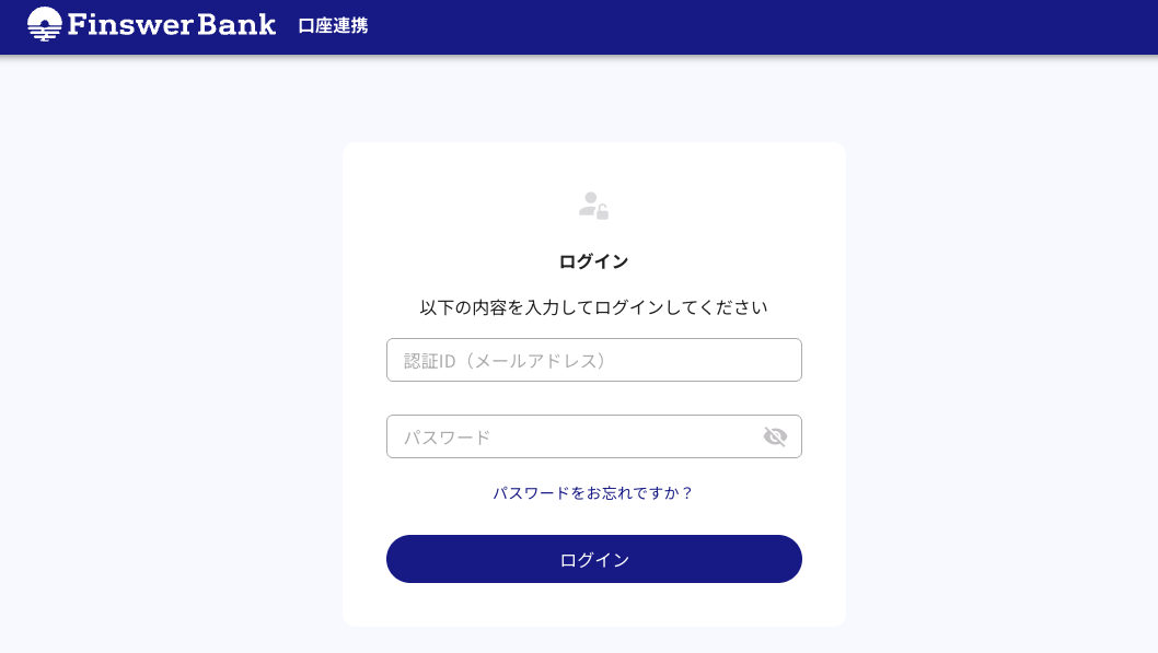 - Finswer Bankへのログインと、パスワードの再設定をして下さい。