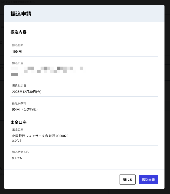請求書に紐づかない、通常の振込の方法を教えてください。 ①サイドメニューの「都度振込」を選択し、「その他の振込」タブを開いてください。 ②金融機関名などの必要情報を入力してください。 ③振込申請をしてください。 ④サイドメニューの「振込承認」から該当する案件の振込予約を実行したうえで、承認アプリの「To -ride」から最終承認をしてください。