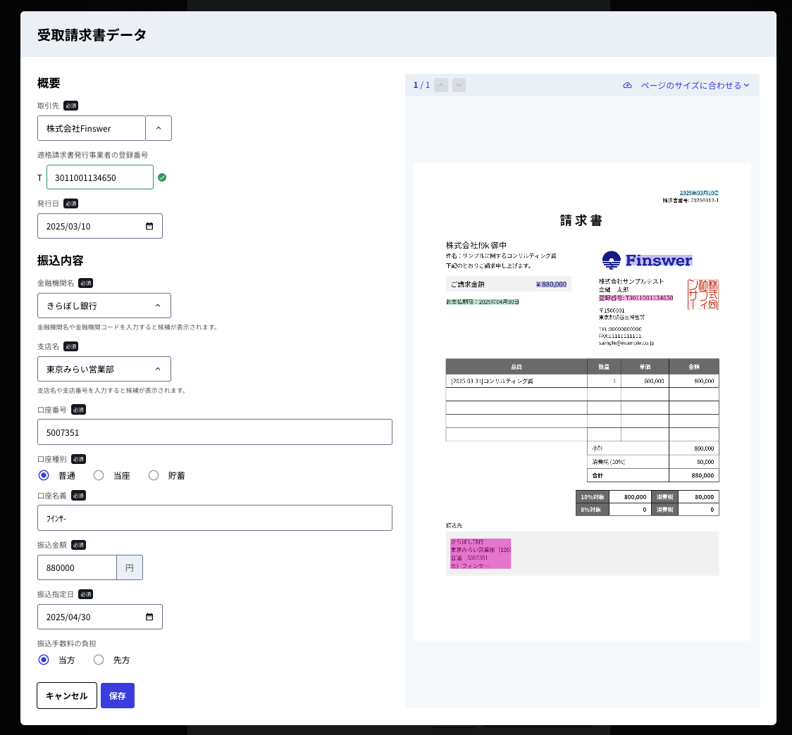 ⑤OCR処理をされた内容に間違いがないかを確認し、保存します。